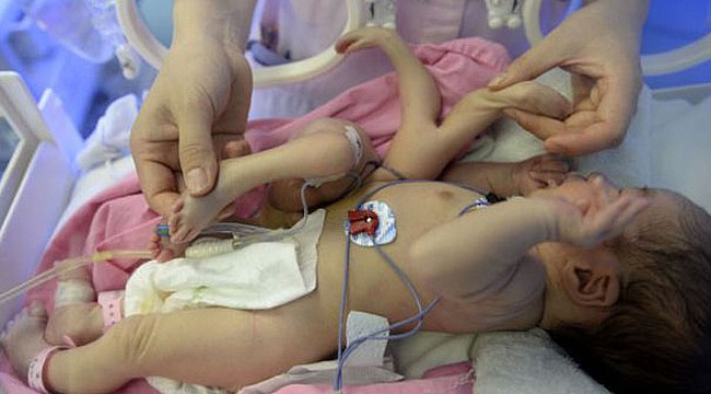Dünyaya gelen çocuğun 8 aylık olduğunu aktaran doğum doktoru, çocuğun 4 bacağı ve 4 kolunun olduğunu ifade ederken, gözünün altında, dudağının yırtık olduğunu ve kafatasının olmadığını aktardı.