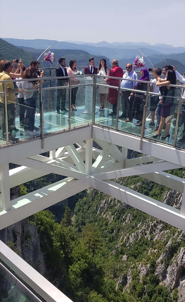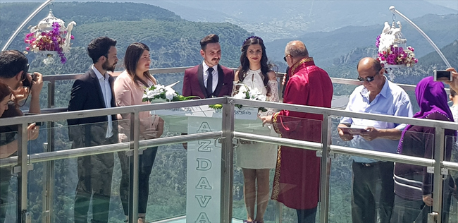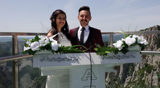 Çatak Kanyonu Cam Teras'ta, Gülay ve Ali Tosman çiftinin nikahlarını Azdavay Belediye Başkanı Osman Nuri Civelek kıydı.