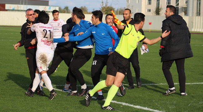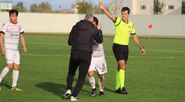 Karşılaşmanın 90+3'üncü dakikasında Atakum Belediyespor'un golünden sonra 1930 Bafraspor kaleci antrenörü, hakemi darp etti.