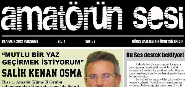 Her Çarşamba günü ek bir ücret ödemeden sadece 35 kuruşa, Yerel Güneş Gazetesi ile birlikte ek olarak dağıtılan "Amatörün Sesi" dergisinin bu haftaki sayısında, Hamzabeyspor'un çiçeği burnunda Teknik Sorumlusu Salih Kenan Osma ve Derepazarıspor'un Gol Makinesi futbolcusu Cemal Hazır ile yapılan özel röportajın yanı sıra, 1. Amatör Küme'de haftanın karması, haftanın sonuçları ve puan tablosu, Bölgesel Amatör Lig haberlerinin dışında, hafta sonu oynanan 3 karşılaşmanın analizi ve U-19 Ligi Şampiyonları Çaykurspor ile Rize Belediyespor hakkında özel bilgiler yer alıyor.
