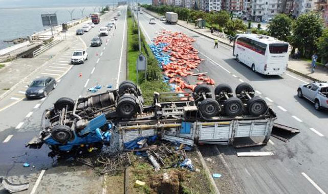 Araklı İlçesi Kalecik Mevkii Karadeniz Sahil Yolu üzerinde meydana gelen kazada, Volkan D.'nin kullandığı 61 K 8962 plakalı TIR, Rize yönüne giderken lastiğinin patlaması sonucu karşı şeride geçerek, İrfan Yenigün'ün (63) kullandığı 61 PY 091 plakalı araca çarptı.