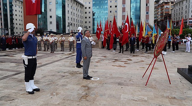 Rize Valiliği ve Rize Belediyesi çelenklerinin Atatürk anıtına sunulmasıyla başlayan tören, Saygı duruşu ve İstiklal Marşının okunmasıyla devam etti.
