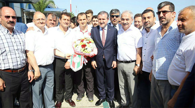 Çiçeği burnunda Gençlik ve Spor Bakanı Osman Aşkın Bak’ı Trabzon havalimanında, Trabzon Valisi Yücel Yavuz, Rize Valisi Erdoğan Bektaş ve Ankara’dan birlikte geldiği, Ak Parti Rize Milletvekilleri Hasan Karal, Hikmet Ayar, Çaykur Genel Müdürü İmdat Sütlüoğlu, Trabzon Büyükşehir Belediye Başkanı Dr. Orhan Fevzi Gümrükçüoğlu, Ak Parti Trabzon İl Başkanı Haydar Revi, Ak Parti Rize İl Başkanı Muhammed Avcı, Rize Belediye Başkanı Prof. Dr. Reşat Kasap, Spor Genel Müdürü Mehmet Baykan ile Rize ve ilçelerinden gelen binlerce kişi karşıladılar.