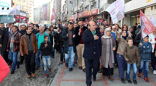Seçim İrtibat Bürosu olarak kullanılan Ses Düğün Salonunda toplanan yüzlerce kişi Saadet Partisi Rize Belediye Başkan Adayı Prof. Dr. Mehmet Bekaroğlu öncülüğünde “Sevgi Yürüyüşü” yaptı. Rize’de başlattıkları hareketin “vicdan hareketi” olduğunu söyleyen Bekaroğlu, “her gün onlarca insan bu harekete katılıyor” dedi.