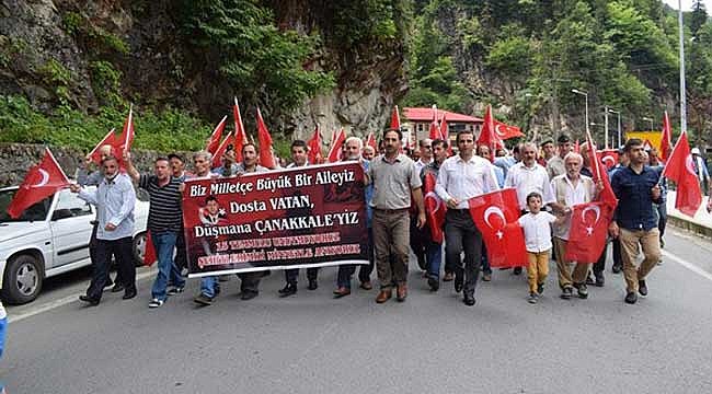Cuma namazı sonrasında Çamlıhemşin Merkez Camii önünde başlayan yürüyüş, Bayrak dağıtımının ardından "Şehitler Ölmez Vatan Bölünmez", "Ya Allah, Bismillah Allah-u Ekber" sloganları ile çarşı merkezine kadar devam etti.
