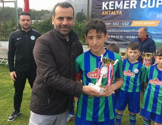 Bu yıl Ocak ayında Eski Rizesporlu futbolcu olan ve aynı zamanda Altay Spor Okulları Genel Direktörü ve 10 Numara Sportif Kurucusu Aydın Yetkiner’in daveti ile Antalya’da Türk ve Yabancı 52 takımın yer aldığı Kemer Cup Turnuvasına katılan Çaykur Rizespor U12 ekibi, oynadığı 9 maçtan 7 galibiyet, bir beraberlik ve bir mağlubiyet alarak turnuvayı 4’üncü olarak tamamladı. U12 ekibimiz, turnuvada Galatasaray, Afyonspor, İstanbulspor, Karşıyaka, İzmirspor, İran ve Bulgaristan Süper Lig ekiplerini mağlup etmişti. Takımın golcü futbolcuları Muhammet Baltacı 16, İmran Gür ise 6 gol kaydetti. Ayrıca U12 ekibimiz, saha içinde ve saha dışında sportif disipline sahip turnuvanın en renkli takımı seçildi.