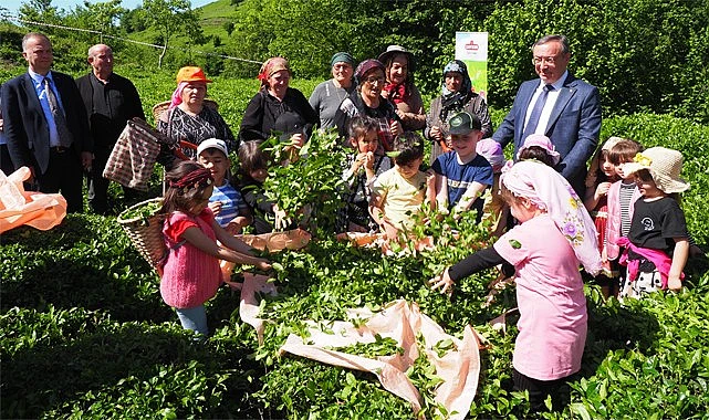 ÇAYKUR Genel Müdürü Yusuf Ziya Alim ve ilçe protokolü Kemalpaşa ilçesine bağlı Köprücü köyünde düzenlenen etkinlikte üreticiler ve çocuklarla çay hasadı gerçekleştirdi.