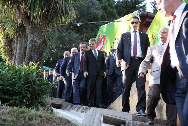 Rize`ye daha önceki yıllarda birkaç kez gelmek istediğini ifade eden Gül, "O günlerde maalesef sel felaketleri oldu, başka gelişmeler oldu ve buradan arkadaşlarım `bu geziyi biraz daha erteleyelim de daha güzel bir havada, günde gelin` dediler ve bugüne kaldı. Bugün de gerçekten Karadeniz`in, Rize`nin bütün güzelliği, bütün şirinliği sizlerle birlikte gün gibi ortada" diye konuştu.