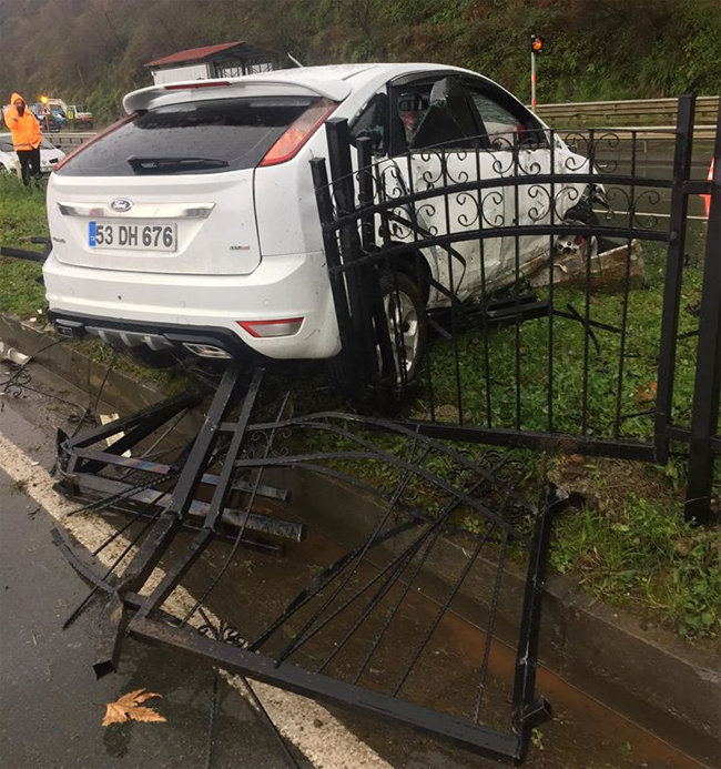Derepazarı ilçesi girişinde meydana gelen kazada 53 DH 676 plakalı sürücü bilgisi öğrenilemeyen otomobil, yolun yağmur nedeniyle kaygan olması sebebiyle direksiyon hakimiyetinin kaybedilmesiyle yol kenarındaki refüjlere çarptı.