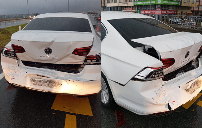 Rize Limanı karşısında orta şeritte ilerleyen otomobile, sağ şeritte seyir halindeki TIR sağanak yağmurun da etkisiyle otoyolda biriken yağmur sularını sıçrattı. Sürücü Arıman’ın görüş açısının kaybolması nedeniyle yavaşladığı esnada 53 ACH 306 plakalı TIR otomobile arkadan çarptı. Sürücü Arıman ve otomobil içindeki gazeteciler hafif sıyrıklarla kazayı atlatırken, maddi hasarın meydana geldiği kazada yaralanma olmadı.