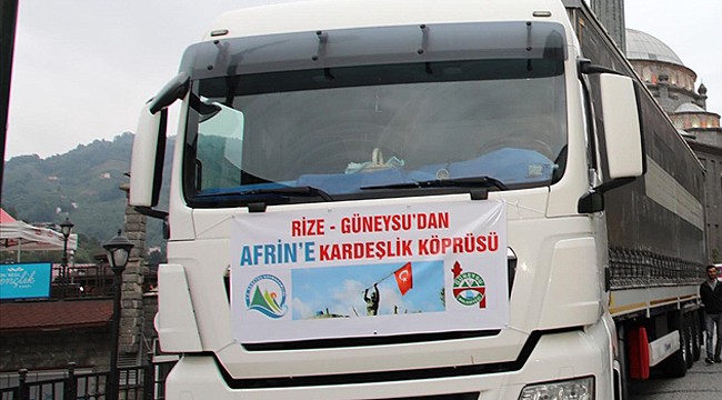 Güneysu Kaymakamlığı ve Güneysu Belediyesince organize edilen, "Güneysu'dan Afrin'e Yardım Köprüsü" projesi kapsamında, ilçe halkının desteğiyle böleye gönderilmek üzere giysi ve çay toplandı.