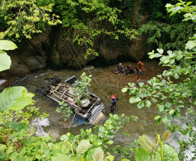 Kamyonette sıkışan sürücü ile yanında bulunan Asiye Pehlivan, İkizdere Arama Kurtarma ekiplerince araçtan çıkarıldı.