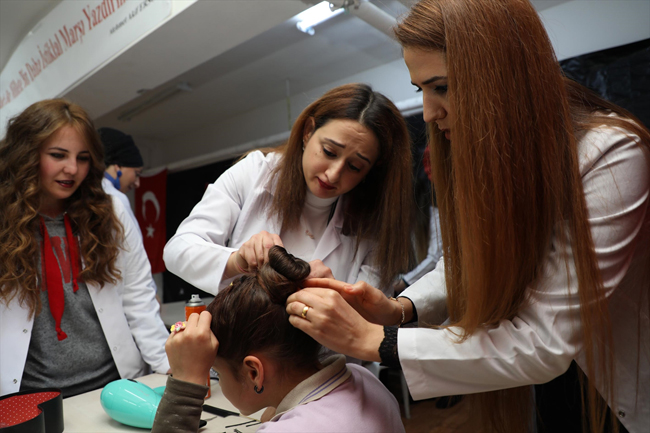 Uzun saçlarını ördüren ilkokul öğrencisi Sevimnaz Abdullah ise saçlarını çok beğendiğini dile getirerek, kuaförlere teşekkür etti.