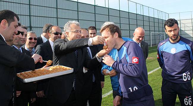 Mehmet Cengiz Tesislerinde Uğur Tütüneker yönetiminde gerçekleştirilen idman öncesi AK Parti Rize Belediye Başkan adayı Prof. Dr. Reşat Kasap ile, parti yöneticileri ve taraftarlar takıma destek ziyaretinde bulundu. Kasap, Tütüneker ve takım kaptanı Florin Cernat'a tatlı ikram etti.