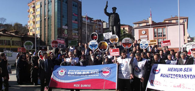 Yapılan eyleme Eğitim-Bir-Sen Rize Şube Başkanı Seyfettin Afacanlar, Memur-Sen Konfederasyonu Rize Şubesi`ne bağlı sendikaların başkan ve yönetim kurulu üyelerinin yanı sıra bazı sivil toplum örgütleri ve kamu çalışanları katıldı.