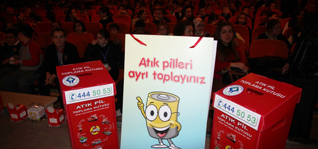Çevre bilincinin öğrenilmesini amaçlayan proje kapsamında İsmail Kahraman Kültür Merkezinde yapılan programda en çok pil toplayan okul ödüllendirilecek.