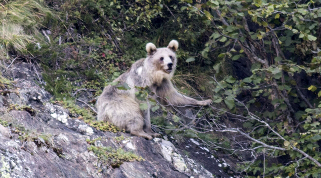 Çalışmalar kapsamında Doğa Koruma ve Milli Parklar Şube Müdürlüğüne bağlı ekipler, bölgede ağaca çıkan ayı ve yavrusunu cep telefonuyla görüntüledi.