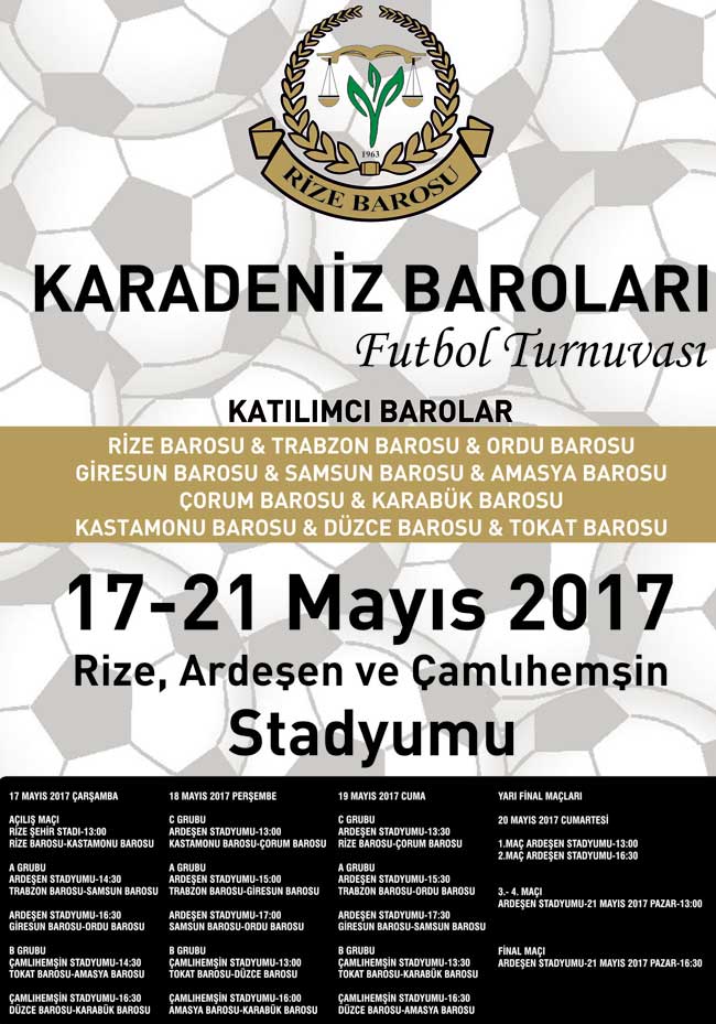 Konuyla ilgili açıklama yapan Rize Baro Başkanı Avukat Mehmet Çırakoğlu, geleneksel olarak her yıl gerçekleştirilen Karadeniz Barolar Futbol Turnuvası’nın bu yıl 17-21 Mayıs tarihleri arasında Rize’de düzenleneceğini belirterek etkinliğin bölge illerin barolarına üye avukatların birlik ve beraberliğine katkı sağlayacağını ifade etti.