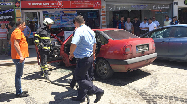 Rize Belediye Binası ile Doktorlar Sitesi arasındaki İbrahim Karaoğlanoğlu Caddesi üzerinde park halindeki 35 TNN 50 plakalı aracın içinden duman çıkmaya başladı.