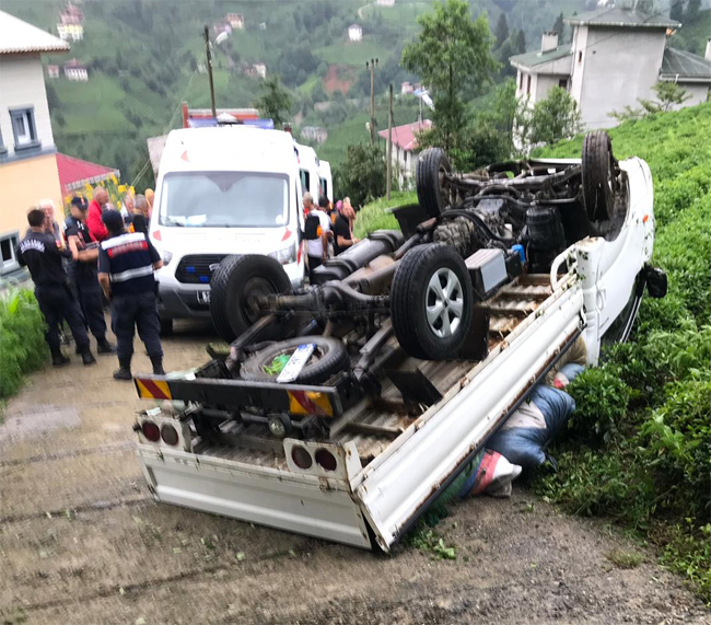 Muhammet Ali Eminoğlu (32) yönetimindeki 67 AAE 367 plakalı çay yüklü kamyonet, merkeze bağlı Camidağı köyünde takla atarak devrildi.