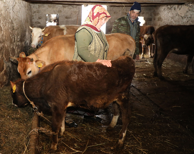 Maddi durumlarının düzelmesi için ilk ineği bir komşusunun aldığını anlatan Yalçınkaya, "Köye döndükten sonra mücadele ederek bir ineği 10 ineğe çıkardık. Ben tedavi için gidince hanım tek başına bakmak zorunda kalıyor. Köydeki evimizin tadilatı için destek istedik ama malulen emekli olduğum ve ahırdaki hayvanlar için yardım alamıyorum. Bize bu kadar mal ile geçinebileceğimizi söylüyorlar." dedi.