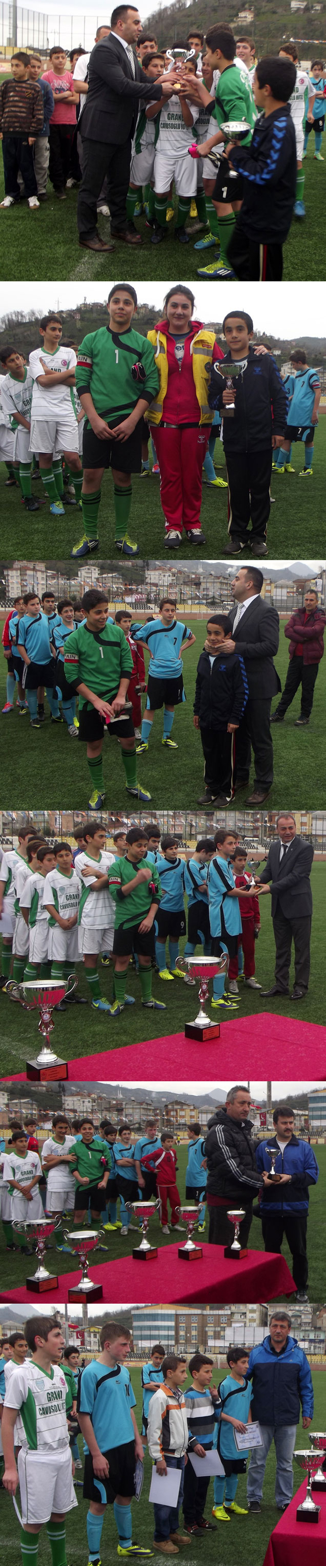 Dereceye giren takımlara müsabakalar sonrası kupalarını Rize Gençlik Hizmetleri ve Spor İl Müdürü Mustafa Çelik, Şube Müdürü Cafer Küçükmustafa, Futbol İl temsilcisi Bilal Karafazlı ve Okul müdürleri verdi.