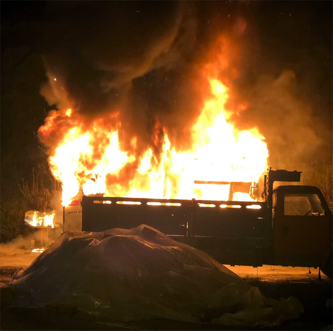 Yangının hemen yan tarafta bulunan kamyona sıçramadan kontrol altına alınması ise olası bir faciayı önlemiş oldu.