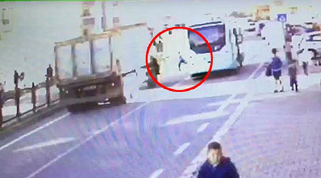 Çevredeki güvenlik kamerasınca kaydedilen görüntüde çocuğun hareket halindeki minibüsün peşinden koşması, yavaşladığı esnada aracın önünden yolun karşısına geçmeye çalışması ve minibüsle aynı yöne giden kamyonun aniden önüne çıkan çocuğa çarpması yer alıyor.