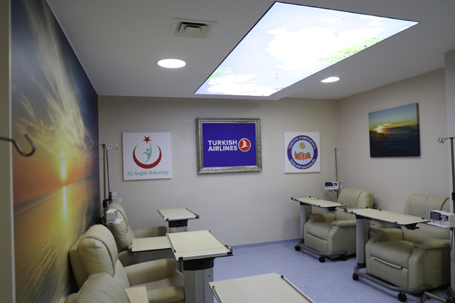 Bununda Recep Tayyip Erdoğan Üniversitesi'nde olması anlamlı olduğunu ifade eden Türkyılmaz, "Kemoterapi sürecinin uzun bir süreç gerektiriyor. Kemoterapi gören hastalarının tedavi süreçlerinde psikolojik ve fiziksel değişiklikler oluyor. Bu ortama girdiklerinde hastane ortamı değil de daha rahat bir ortamda tedavi görmelerini amaçladık." dedi.