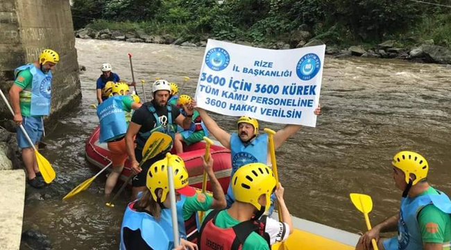 Türkiye Kamu Sen Rize İl Temsilcisi ve Türk Eğitim-Sen Rize Şube Başkanı Murat Köseoğlu öncülüğünde sendika üyeleri Fırtına Deresi'nde hükümet tarafından memurlara verilen zam oranını farklı bir eyleme imza atarak protesto ettiler.