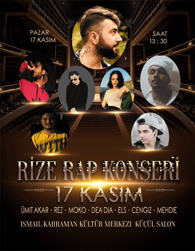Düzenlenecek olan konserde Rize'de rap müzik yapan isimler arasında yer alan Ümit Akar, Rez, Moko, Deadia, Els, Cengiz ve Mehdie isimli genç rapçiler sahne alacak.