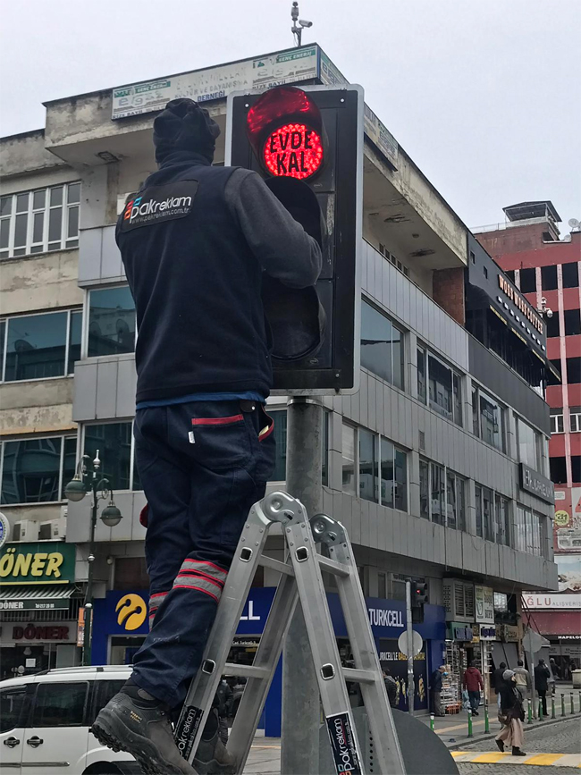 Salgından korunmak ve bulaş riskini en aza indirmek için uygulanabilecek en etkili yolunun halkın evde kalması olduğundan dolayı, Rize’de bu yönde bir farkındalık oluşturmak amacıyla şehir merkezindeki bütün trafik sinyalizasyon sistemindeki kırmızı ışıklara "Evde kal" uyarı yazısı yerleştirildi.