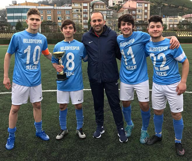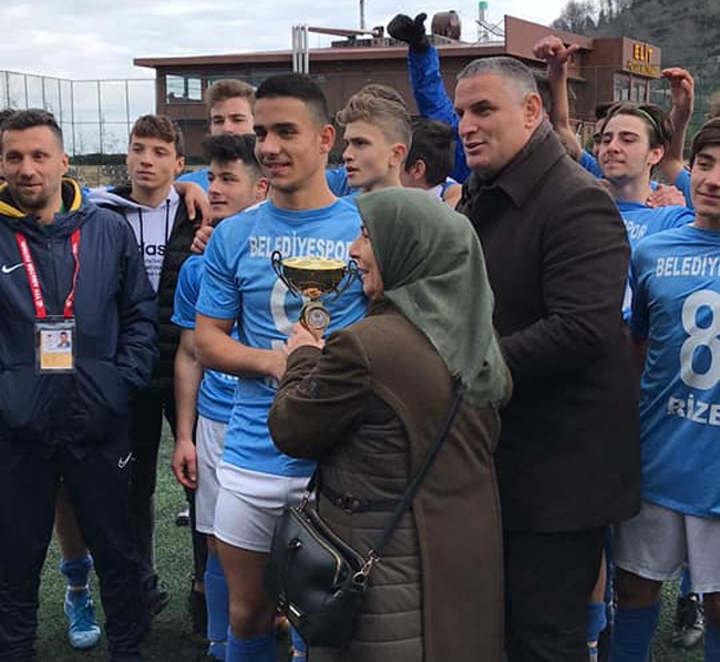 Kadir Cevahir Antrenörlüğündeki Rize Belediyespor U16 ekibine şampiyonluk kupasını Amatör Spor Kulüpleri Federasyonu (ASKF) Rize Başkanı Ali Çelik takdim etti.