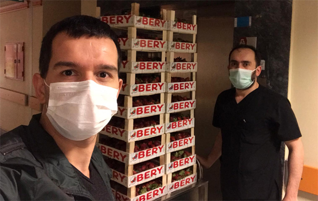 Çilek kasalarını oğluyla birlikte hastanelerde görevli sağlık çalışanlarına teslim eden İshar Gül, "Tüm dünyada olduğu gibi ülkemizde de kritik bir dönemden geçiyoruz. Bir ayı aşkın bir zamandır salgın illetiyle mücadele veriliyor. Tabii bu mücadelenin en temel taşlarını sağlık çalışanlarımız oluşturuyor. Gecelerini gündüzlerine katarak, kendi sağlıklarını ikinci plana atarak vatandaşlarımızın sağlıkları için seferber olan sağlık çalışanlarımıza ne kadar teşekkür etsek azdır. Onları bu naçizane ikramlarımızla mutlu edebilirsek, ne mutlu bizlere" dedi.
