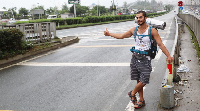 Otostop ile Türkiye’yi gezen 20 yaşındaki Şükür Demet, otobanda otostop çektiği için 108 lira ceza yedi.