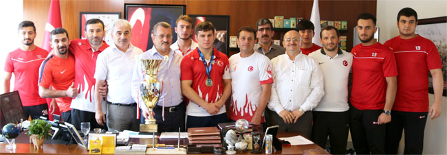 Çaykurspor Güreş Kulübünde güreşe başlayan, Recep Tayyip Erdoğan Üniversitesi Besyo öğrencisi 20 yaşındaki güreşçi Salih Aydın’ı, makamında kabul eden, Çaykur Genel Müdürü ve Çaykurspor Kulübü Başkanı İmdat Sütlüoğlu, Dünya şampiyonu güreşçisi Salih Aydın’a Cumhuriyet altını ve Çaykur markalı çeşitli hediyeler vererek, bu önemli başarısından dolayın tebrik etti ve başarılarının devamını diledi.