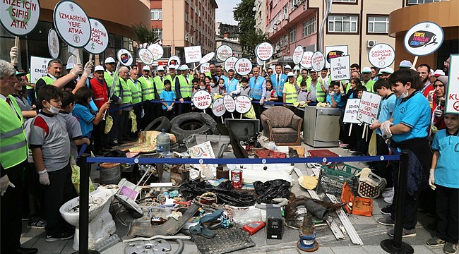 Rize Valisi Kemal Çeber, Rize Belediye Başkanı Rahmi Metin ve il protokolünün katıldığı etkinlikte öğrencilerle birlikte farkındalık oluşturmak adına sokakta yere atılmış olan çöpler toplantı.