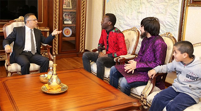 Vali Çeber de ziyaretten duyduğum memnuniyeti ifade ederek; “Farklı kültüre, dile ve renge sahip birbirinden değerli siz öğrenci arkadaşlarımızı Türkiye ve ilimizde ağırlamaktan büyük mutluluk duyuyoruz. Kendi ülkelerinize döndüğünüzde veya başka bir ülkeye gittiğinizde bizlerin ve ülkemizin gönüllü tanıtım elçileri olacağınıza inanıyorum” şeklinde konuştu ve misafir öğrencilere ziyaretin anısına çeşitli hediyeler verdi.