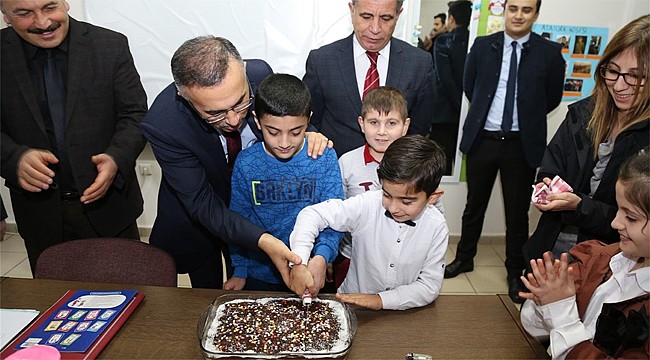 Vali Çeber, İstiklal İlkokulundaki programının son bölümünde ‘Özel Eğitim 4. Sınıfı’ öğrencisi Yusuf Delihasan için hazırlanan sürpriz doğum günü kutlamasına katıldı ve Yusuf’a kendi elleri ile pasta ikramında bulundu. Yusuf ‘un mutluluğunun gözlerinde okunduğu sürpriz yaş günü kutlaması esnasında Vali Çeber, Yusuf’a ve sınıftaki diğer öğrencilere çeşitli hediyeler verdi.