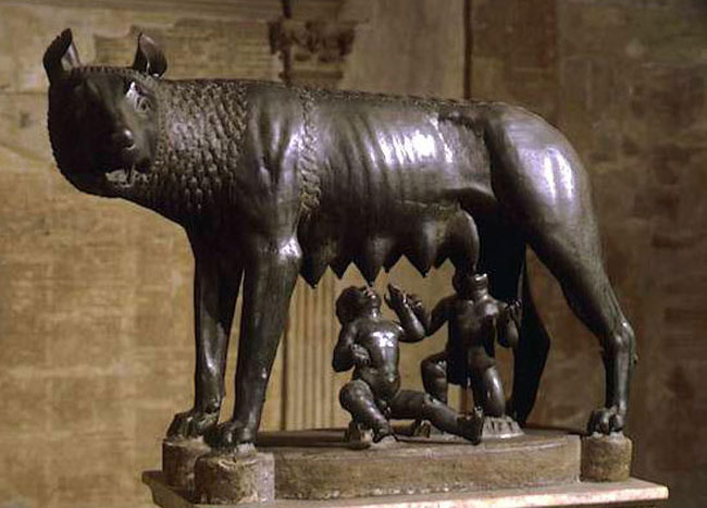 Yaygın bir Roma efsanesine göre Romulus Roma'nın kurucusu, Romus ise ikiz kardeşidir. Eski İtalyan kentlerinden Alba Longa'nın Numitor adında bir kralı vardır. Numitor'un tahtına göz diken kardeşi Amulius onu devirir ve tahtını güvenceye almak için, Numitor'un kızı Rhea Silvia'ya hiç evlenmeyeceğine ilişkin yemin ettirir. Evlenirse, doğacak çocuklarının tahta sahip çıkacağından korkmaktadır. Oysa savaş tanrısı Mars, Rhea'ya âşık olur. Rhea'nın Mars' tan ikiz oğullan dünyaya gelir.