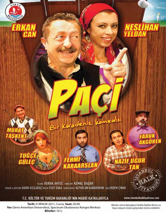 Paçi’yi İstanbul Halk Tiyatrosu İstanbul dışında turne kapsamında yurdun çoğu illerinde ve Kıbrıs’ta sahnelemiş. Kemal Başar’ın yönettiği, geleneksel tiyatro öğelerinin bol bol kullanıldığı çağdaş bir yorumla sahnelenen müthiş bir Karadeniz komedisi. Oyunda Karadeniz'de gezici tiyatro yapan bir adamın Karadeniz'i değiştirmeye, bozmaya, satmaya, talan etmeye çalışanlara karşı mücadele ederken karşısına çıkan Karadeniz kadar hırçın bir kızın birleşen öyküsü sahnede izleyici ile buluşuyor. Modern bir Donkişot öyküsü gibi.
