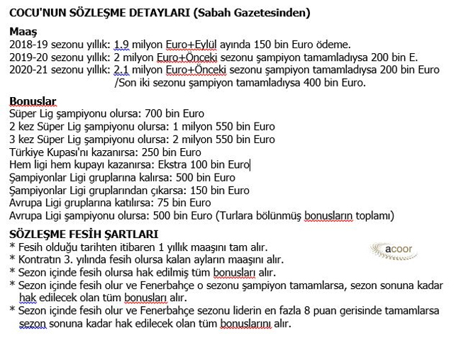 Sabah Gazetesi, Rize’de ağır fırtınaya yakalattığı Fenerbahçe Futbol Takımının artık Teknik Direktörlük görevine devam etmemeli kanaati spor çevrelerince olgunlaşmaya başlayınca, Cocu’nun Sözleşme Fesih koşullarını yazmış bugün.