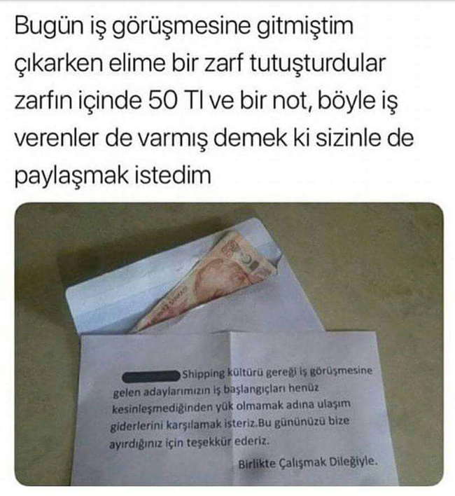 Tüm bu satırları bugün sosyal medyada gördüğüm bir fotoğraftan hareketle yazdım. İnsan Kaynağına yaklaşım açısından yalnız olmadığımı anımsattı bana bu fotoğraf. Bir zarf içerisinde ucu gözüken 50 TL ile bir mesaj kağıdının yer aldığı fotoğrafı paylaşacağım ama yine de kağıtta yer alan cümleyi aynen paylaşmak istiyorum.